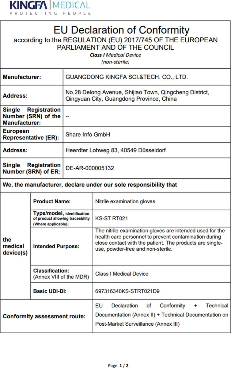 Kingfa Medical Nitril Onderzoekshandschoenen