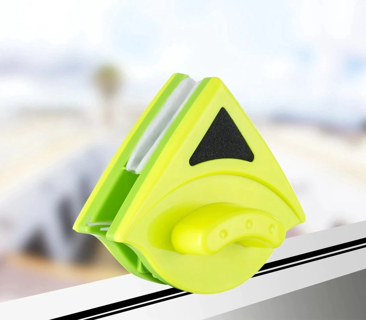 De driehoekvormige magnetische ramenwasser heeft een mooi compact ontwerp, waarbij stevig materiaal is gebruikt. Zo is er een krachtige ‘neodymium’ magneet gebruikt die ervoor zorgt dat u door middel van dit apparaat uw ramen van binnenuit kunt schoonmaken. U kunt met de magnetische ramenwasser een groot oppervlak van het raam schoonmaken en dit kost niet veel tijd. De ramenwasser is streep- en krasvrij door de anti-kras rubberen strips..