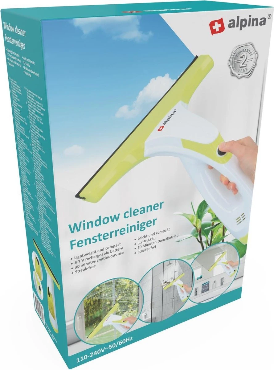 De raamtrekker van alpina werkt op een 3,7V lithiumbatterij en is oplaadbaar. De oplader van de raamwisser wordt meegeleverd. De elektrische ramenwasser gaat met een volle batterij maximaal 30 minuten mee. Je verbindt hem vervolgens maximaal 3 uur met de oplader om de batterij weer volledig op te laden. Dankzij zijn lichte gewicht van 635 gram kun je de elektrische raamwisser makkelijk door het huis verplaatsen en verschillende vlakke oppervlakken zoals ramen, tegels en spiegels streeploos reinigen.