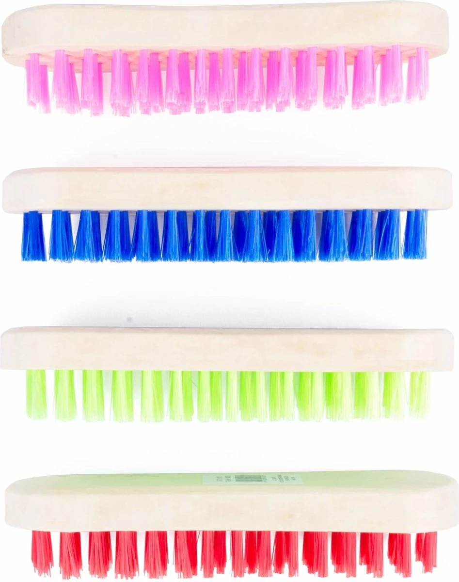 Deze schrobborstels zijn gemaakt van hout en zijn verkrijgbaar in 4 verschillende kleuren. Deze kleuren zijn willekeurig uit het magazijn gekozen en de prijs is per stuk.