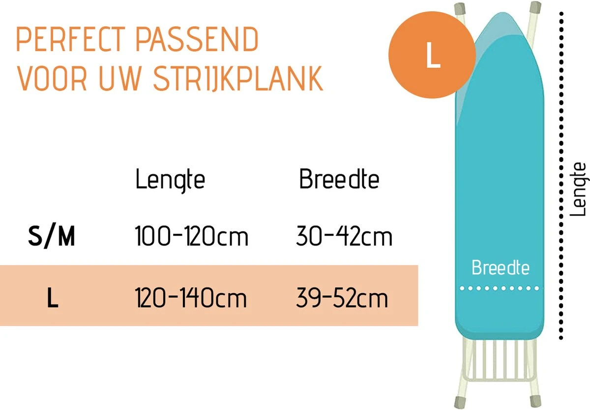 - EASY IRONING – De strijkplankhoes heeft een “Turbo Zone” die het strijken nog makkelijker maakt. Haal het hete strijkijzer 3 keer over de zone en geniet van comfortabel strijken met weinig inspanning.