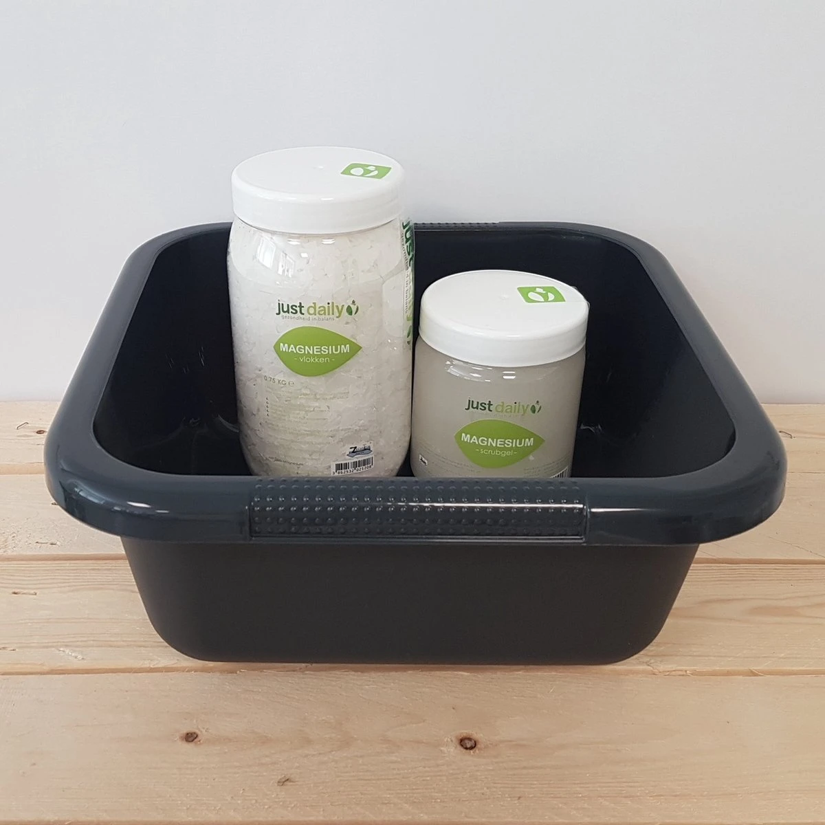 Bij Just Daily Magnesium gebruiken we deze graag voor een ontspannen voetenbad. Gebruik zo’n 125 gram Just Daily MagnesiumVlokken op 4 liter water en geniet 20 minuten van de heilzame kracht van magnesium.
