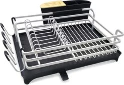 Rekcapaciteit: de bestekhouder biedt plaats aan 9 borden, meerdere kommen en tientallen vorken en messen, aan de zijkant bevinden zich 4 bekerhouders.