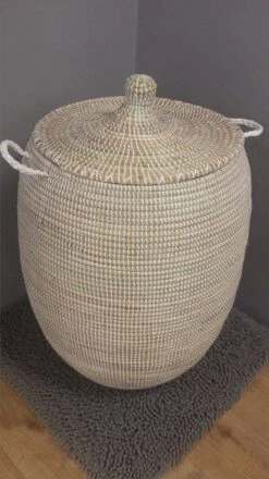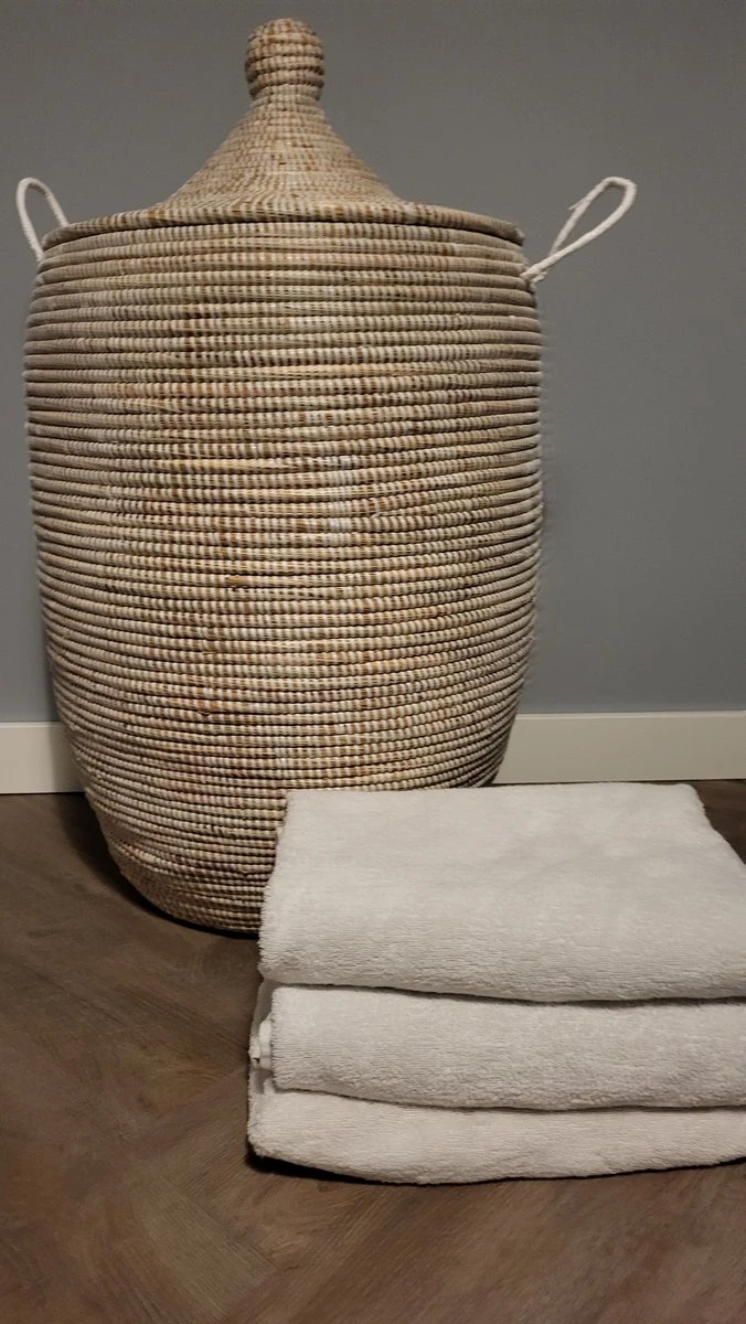 Ideaal als wasmand, prachtig in uw badkamer of slaapkamer . Je kunt deze witte mand ook gebruiken om speelgoed iof kleden op te bergen .