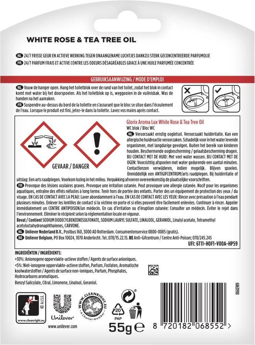 Glorix Aroma Lux Toiletblokken White Rose & Tea Tree Oil – 9 X 55g – Voordeelverpakking