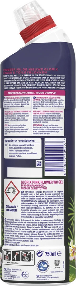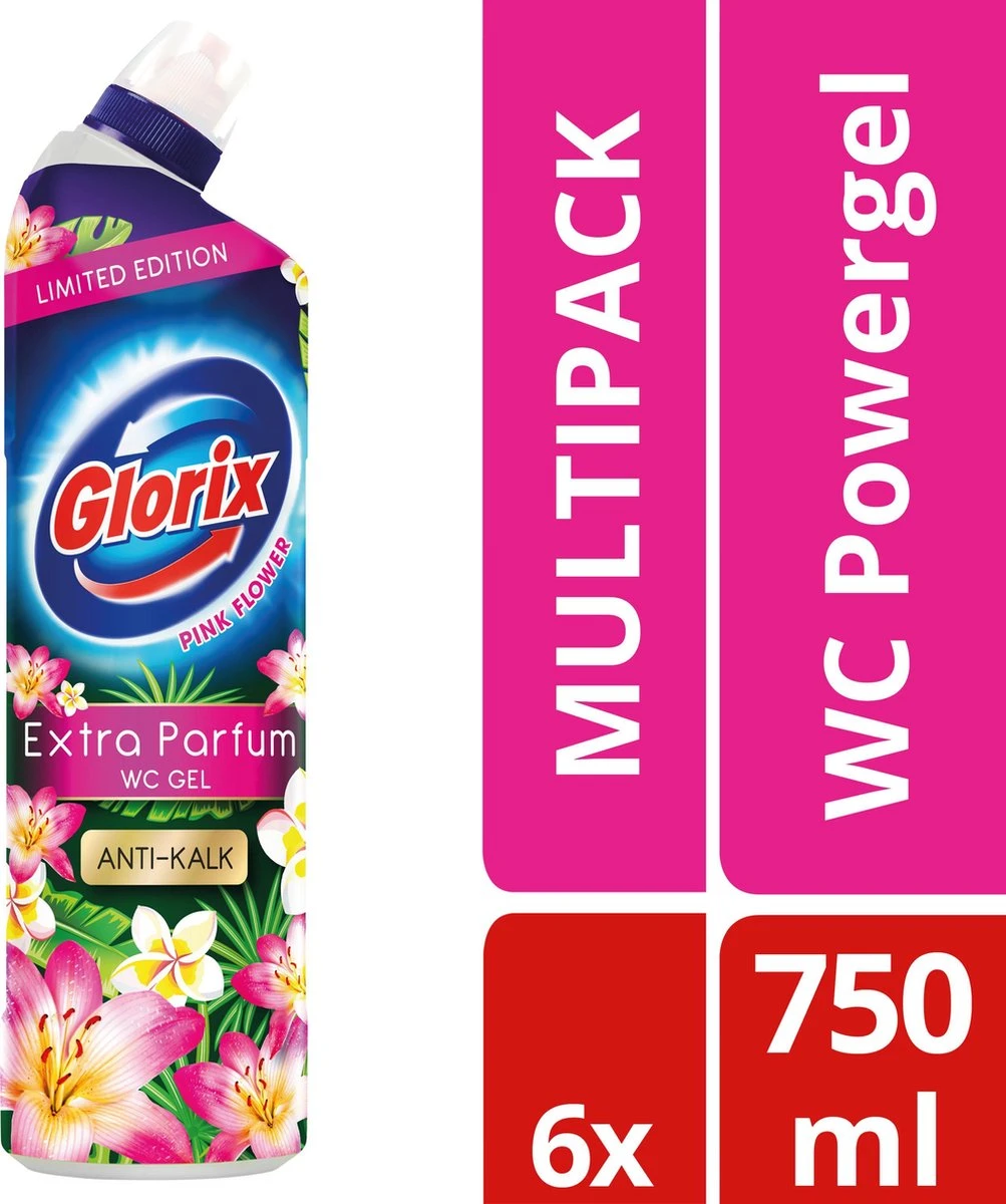 Glorix WC Powergel Toiletreiniger Pink Flower – 6 X 750 Ml – Voordeelverpakking