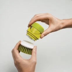 Deze innovatieve Palm Scrub afwasborstel van Joseph Joseph is ideaal voor het reinigen van pannen en servies. De afwasborstel is niet zo maar een afwasborstel, want deze is bevestigd op een handige zeepdispenser die u kunt vullen met afwasmiddel. Met 1 druk op de knop komt het afwasmiddel uit de dispenser via de afwasborstel, waardoor u servies en pannen eenvoudig kunt reinigen. Het afwassen van uw servies in een sopje is dus verleden tijd! Dit werkt niet alleen prettig, maar is ook hygiënisch. U hoeft servies en pannen nu nooit meer te reinigen in water dat al vervuild is. De afwasborstel heeft anti-kras borstelharen, waardoor u deze ook prima kunt gebruiken in pannen met een anti-aanbaklaag. De afwasborstel wordt bovendien geleverd met een handige houder. De houder vangt overtollig water en zeep, afkomstig uit de afwasborstel, eenvoudig op in het reservoir. U kunt de houder eenvoudig uit elkaar halen om het overtollige water en zeep weg te gooien. Daarna kunt u de houder eenvoudig reinigen in de vaatwasmachine. Hierdoor kunt u hygiënisch werken.