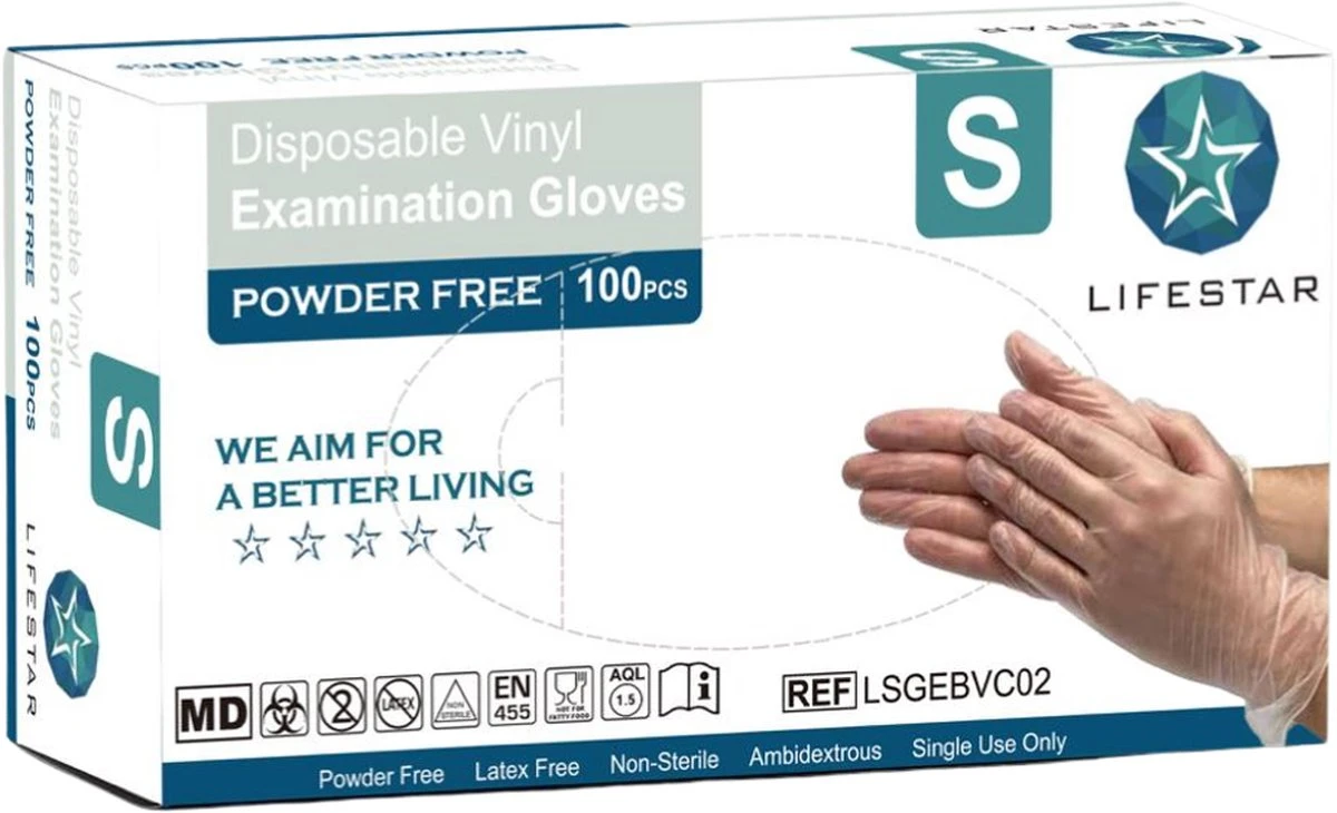 LifeStar-Vinyl Wegwerphandschoenen-100 St.-poedervrij-transparant-Maat M- Beschikbaar S-M-L-XL