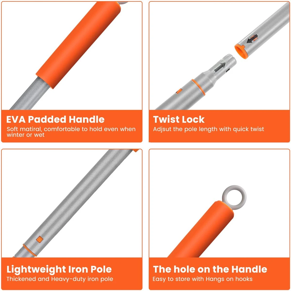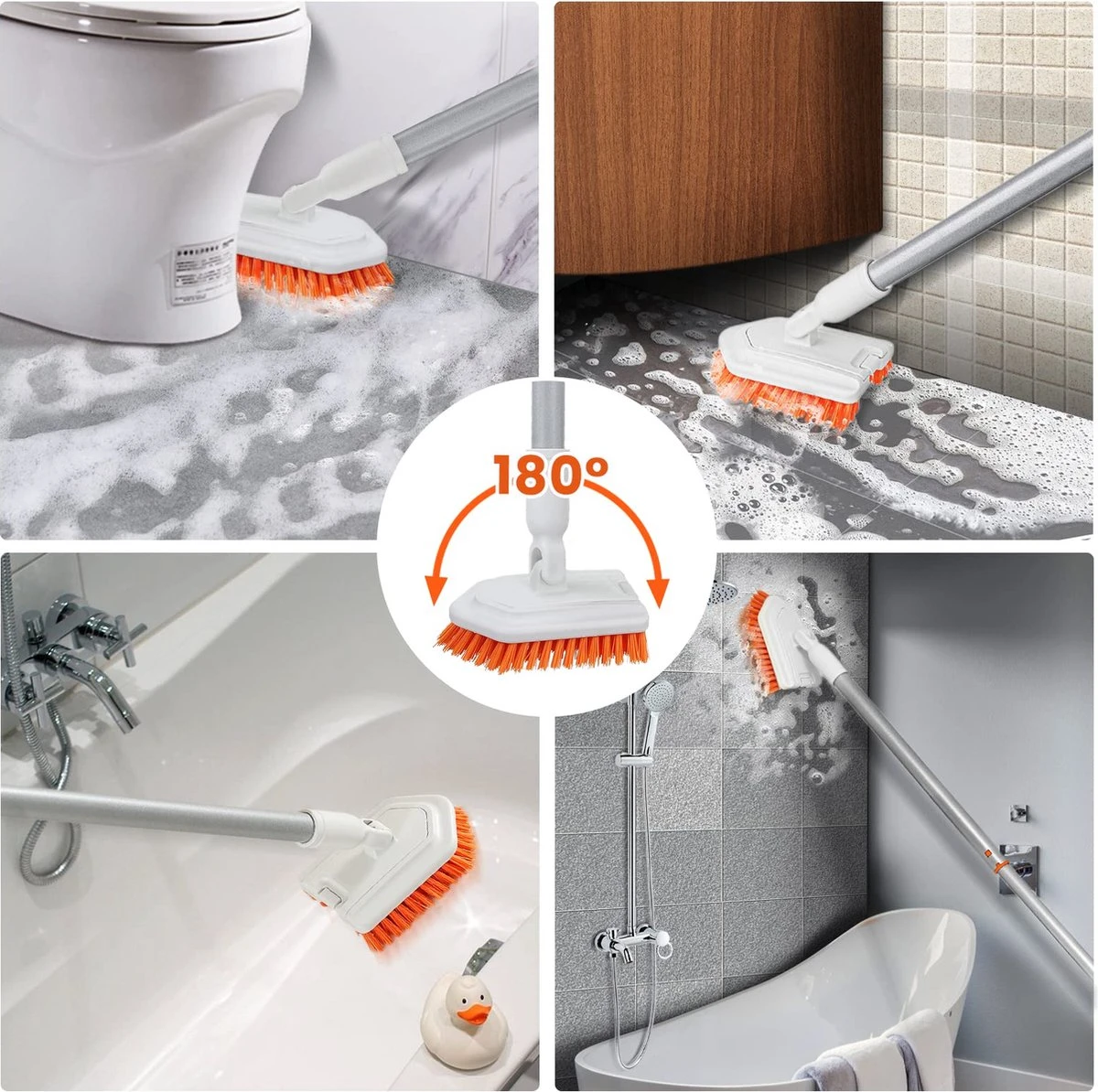 180° VERSTELBARE JOINT: Deze badkamerreinigingsborstel heeft een 180 graden verstelbare verbinding, die bij het reinigen van plaatsen met verschillende hoeken in de gewenste hoek kan worden afgesteld en gestabiliseerd.