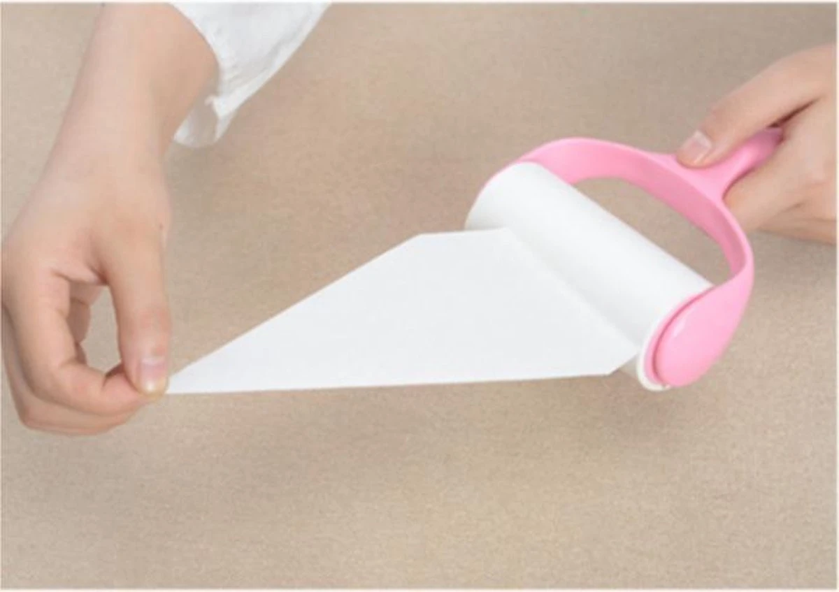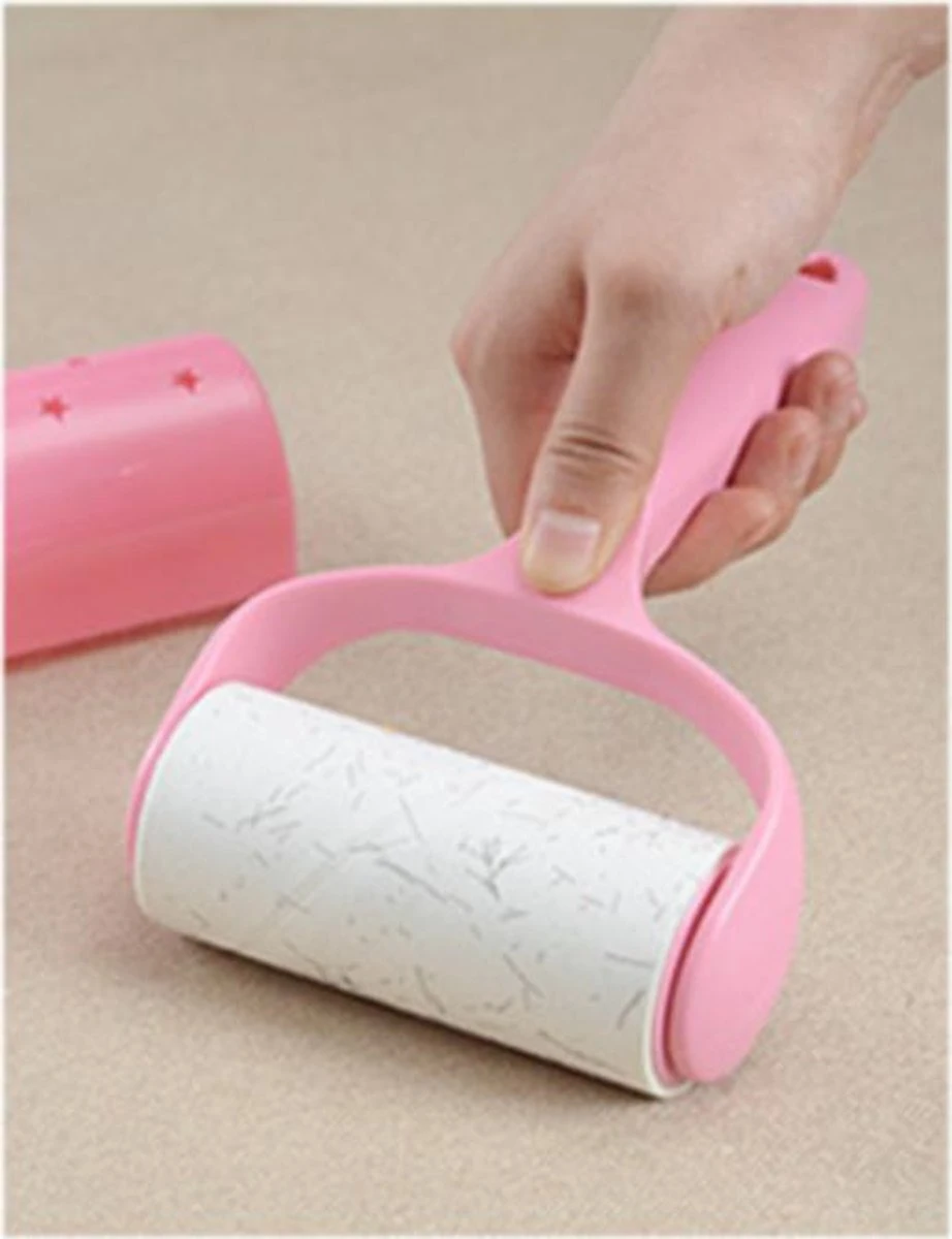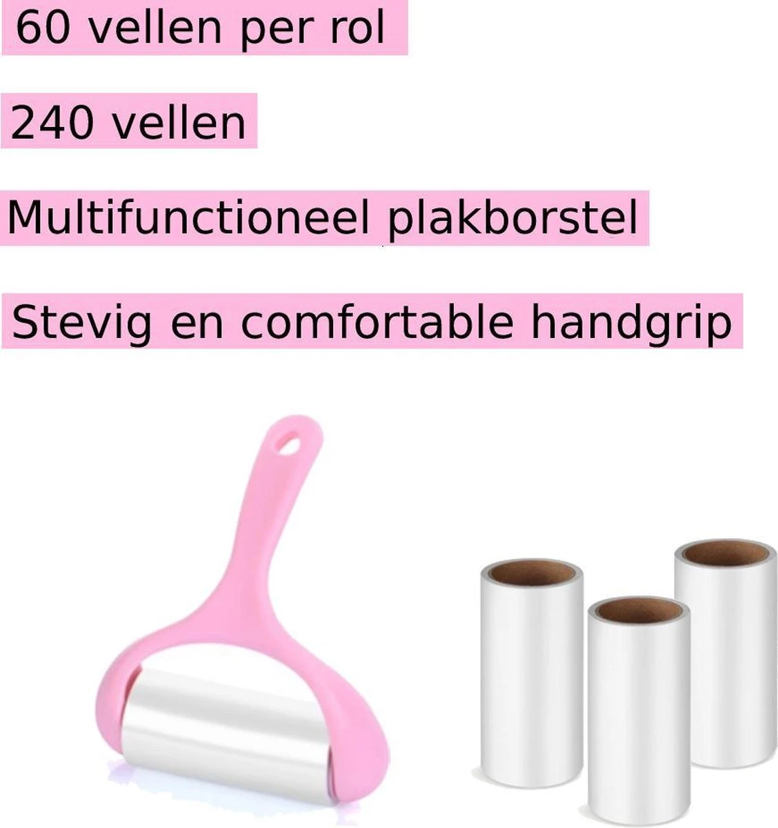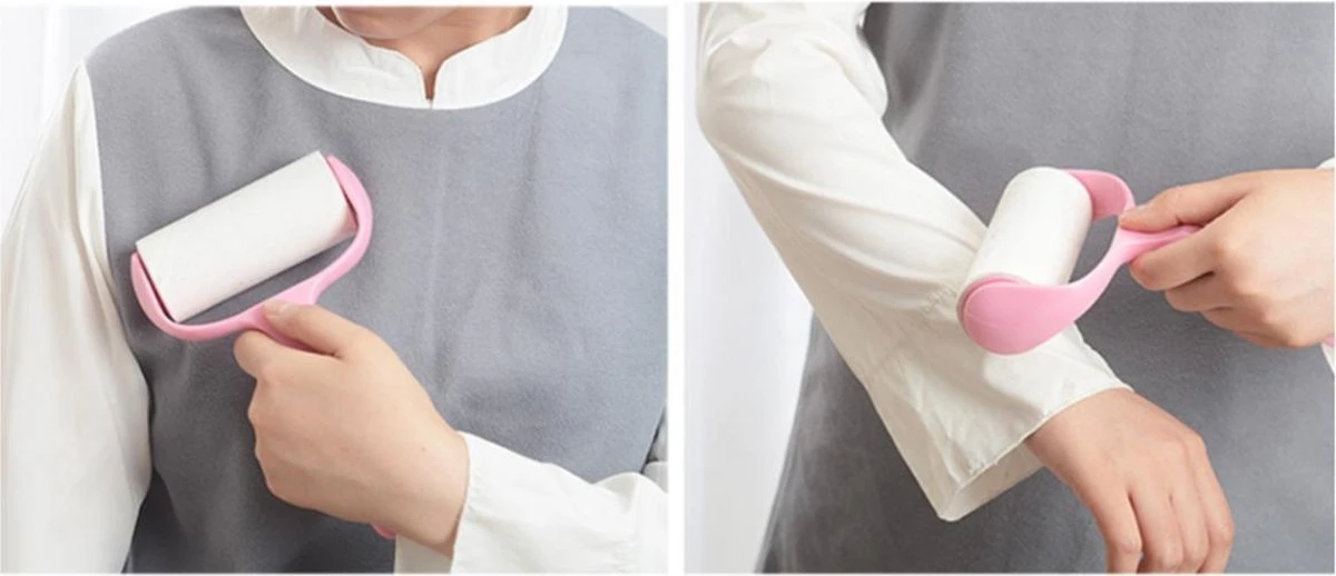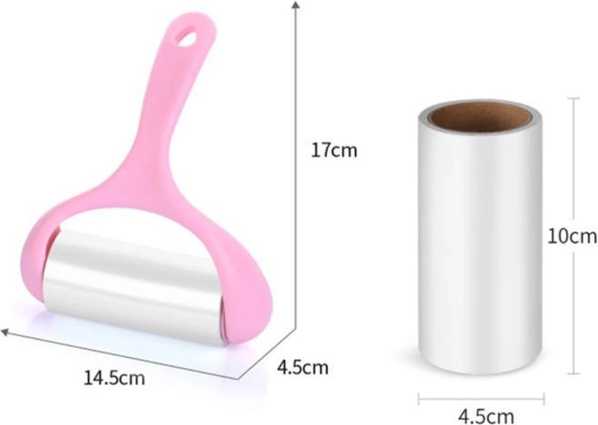 Door simpelweg met deze kledingroller te rollen over je kleding zijn alle pluisjes, stof en (huisdier)haren ervan af. De kledingroller is geschikt voor alle soorten stof, is milieuvriendelijk, bevat geen gif en laat geen geur achter. Het instrument bestaat uit een handvat en een roller. Het handvat heeft een ergonomisch design zodat het goed in de handen ligt. De roller beschikt over een plaklaag waaraan alle viezigheid blijft plakken. Doordat de roller voorzien is van unieke parallellogram vormige vellen zijn die makkelijk afscheurbaar en wisselbaar. Deze roze/witte kledingroller is 14,5 x 17 x 4,5 cm groot. Hij wordt geleverd met 3 extra rollen zelfklevend papier, waarbij 1 rol 60 vellen bevat.
