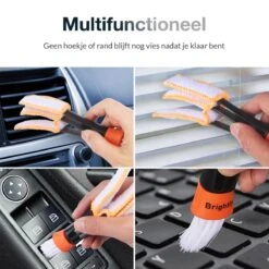OOK KOZIJNEN SNEL SCHOONMAKEN – De meeste lamellen reinigers zijn niet heel veelzijdig. Vaak moet je alsnog een extra borstel aanschaffen om je kozijnen schoon te maken. Met de BRIGHTLY lamellen reiniger is dit niet langer noodzakelijk. Aan de achterkant van de lamellen reiniger zit daarom een borstel waardoor je naast je lamellen ook de kleine hoekjes en kiertjes van je kozijn in een handomdraai schoonmaakt.