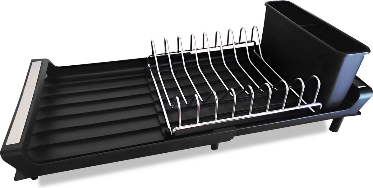 MIRI Afdruiprek – Afwasrek – Uitschuifbaar – Met Lekbak In Gootsteen – Afwas – Roestvrij Staal – Zwart