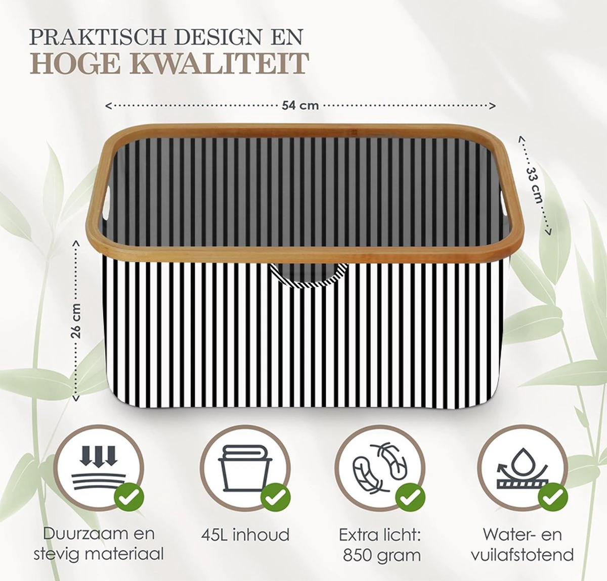 Dankzij het hedendaagse design past deze wasmand uitstekend in elke inrichting. Van modern tot urban tot authentiek, de MIRI wasmand past er in thuis. De mand is ontworpen om de ruimte net en geordend achter te laten en hiervoor in de plaats stijl terug te krijgen. Naast wasmand kan dit product ook dienen als opbergmand van speelgoed of tijdschriften en meer. Ontdek stijl en ultiem gemak met deze multifunctionele mand!