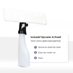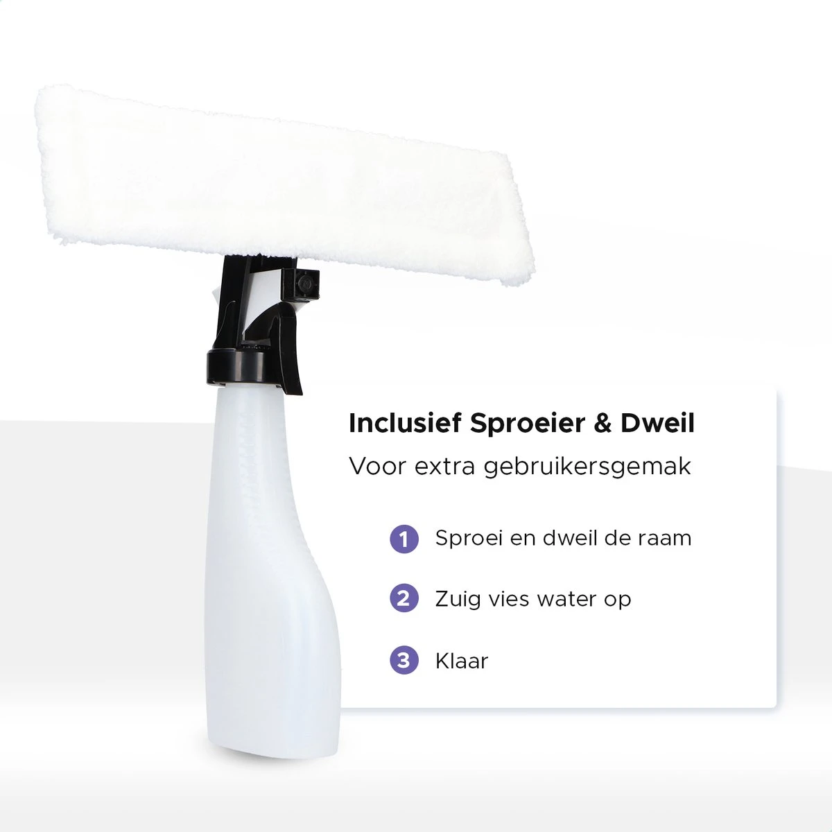 - Reinig de ramen met de raamwisser. De poetsdoek van de raamwisser kun je na gebruik eenvoudig schoonspoelen onder de kraan of uitwassen in de wasmachine.