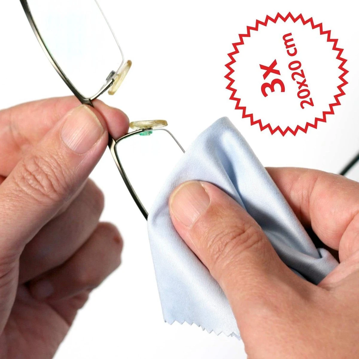 - Met de brillenpoetsdoek heb je geen problemen meer met vuil in de doek, omdat je bij deze afmetingen van 20 x 20 cm altijd een vrije, ongebruikte hoek vindt.