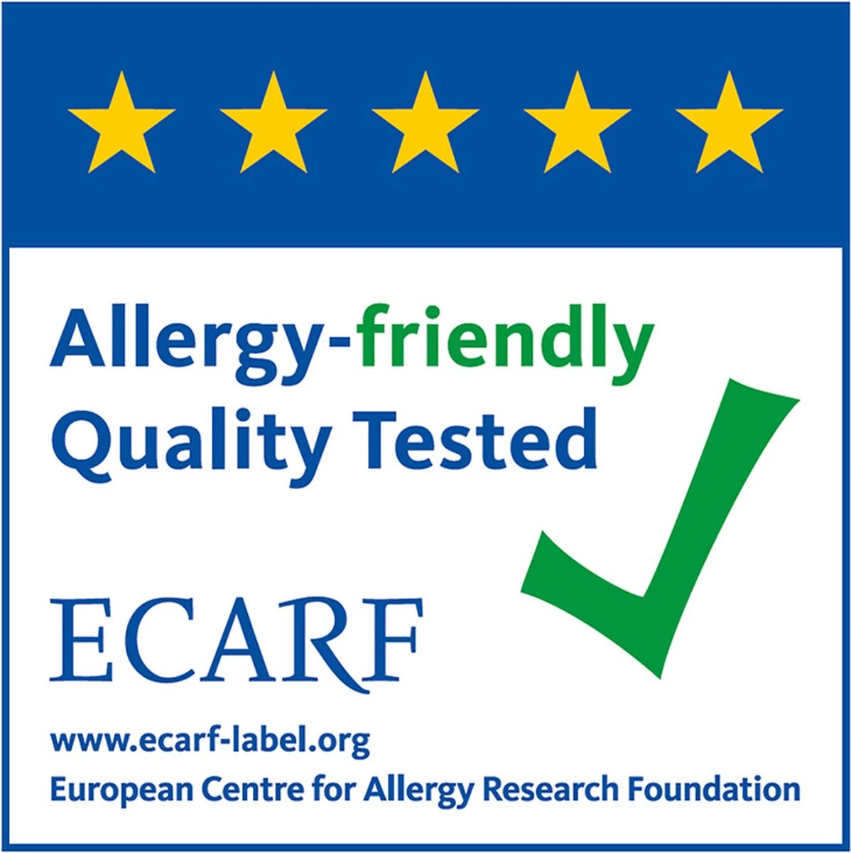 - Bevestigd als allergie-vriendelijk door ECARF, het instituut wat certificaten toekent aan producten die consumenten met allergiƫn ondersteunen in hun allerdaagse activiteiten.