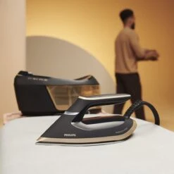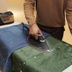 Dankzij het compacte formaat is hij licht en eenvoudig te hanteren als je jouw kleding strijkt. Hij past zelfs helemaal op de strijkplank. Maar denk niet dat een kleiner formaat ook betekent dat hij minder krachtig is. Dankzij onze exclusieve ProVelocitytechnologie hebben we krachtige stoomstrijkijzers die licht en compacter zijn dan ooit.