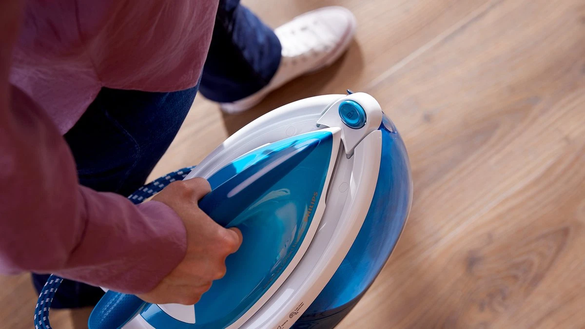 Vergrendel uw strijkijzer veilig op het basisstation om het eenvoudig overal in huis te kunnen dragen en het risico van contact met de hete zoolplaat te beperken - Grote tank voor langdurig gebruik