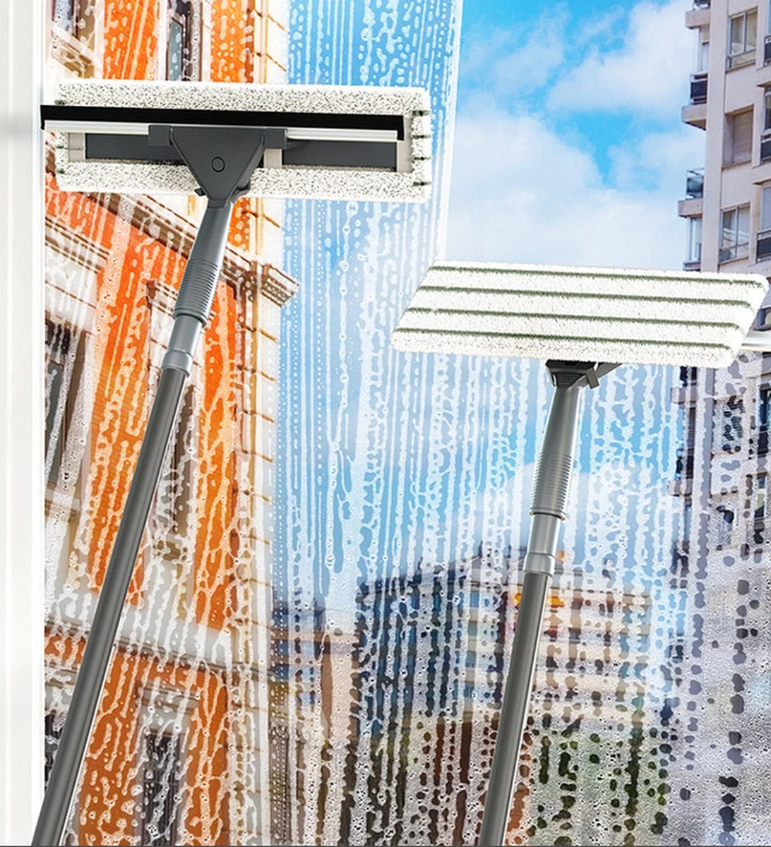 Eenvoudig te gebruiken 3 in 1 raamwisser met inwasser, trekker en telescoopsteel van 30 cm!