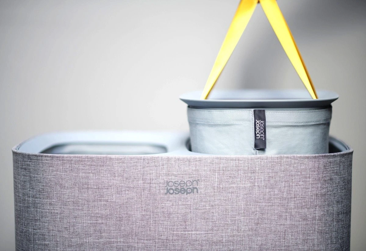 Het sorteren van wasgoed is nog nooit zo makkelijk geweest met deze slimme Tota wasmand van Joseph Joseph. Dankzij de praktische snufjes is de wasdag voortaan een minder grote klus. De wasmand is voorzien van een deksel waaronder je 2 verschillende stoffen tassen vind welke gebruikt kunnen worden om licht en donker wasgoed te kunnen scheiden. Iedere tas is voorzien van handvatten waardoor je hem makkelijk vanuit de wasmand naar de wasmachine kunt tillen. De lus aan de onderzijde helpt je vervolgens om de tas makkelijk te legen. Hierna kan de tas eenvoudig, zonder lussen of knopen, in de wasmand worden teruggeplaatst dankzij de zelf lokaliserende rand zodat hij perfect op zijn plaats valt. Het stijlvolle ontwerp maakt deze wasmand ideaal om te combineren met andere stijlen in huis waardoor hij niet misstaat in zowel de badkamer, slaapkamer of het washok. Deze wasmand heeft een inhoud van 90 Liter en is ook verkrijgbaar in een 60 Liter variant. Hij wordt plat geleverd inclusief montage instructies.