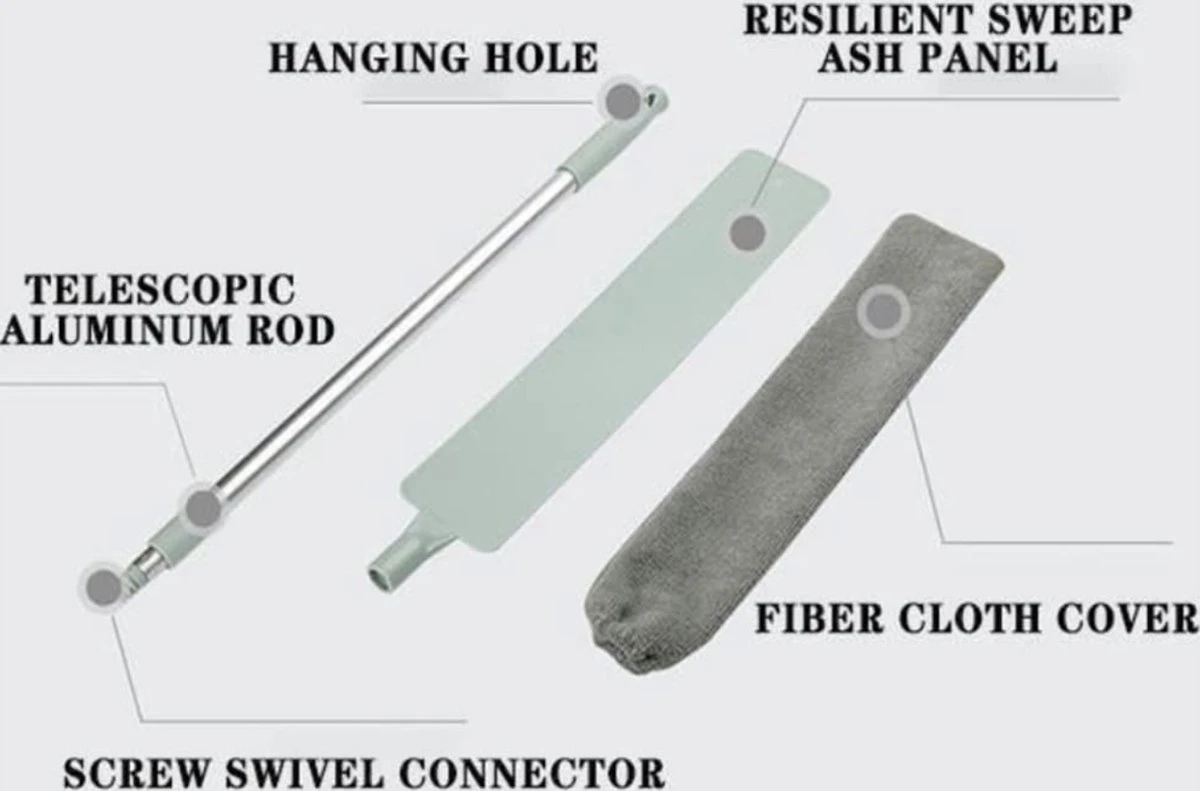 De microvezel kap is geschikt voor het reinigen van verwijderbare bewijzen, ventilatoren, ramen, jaloezieën, onder meubels en banken.
