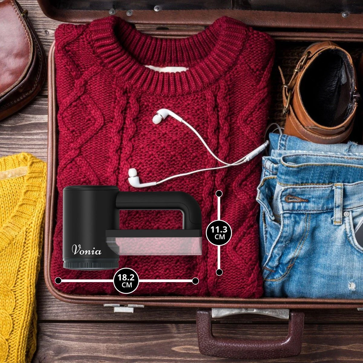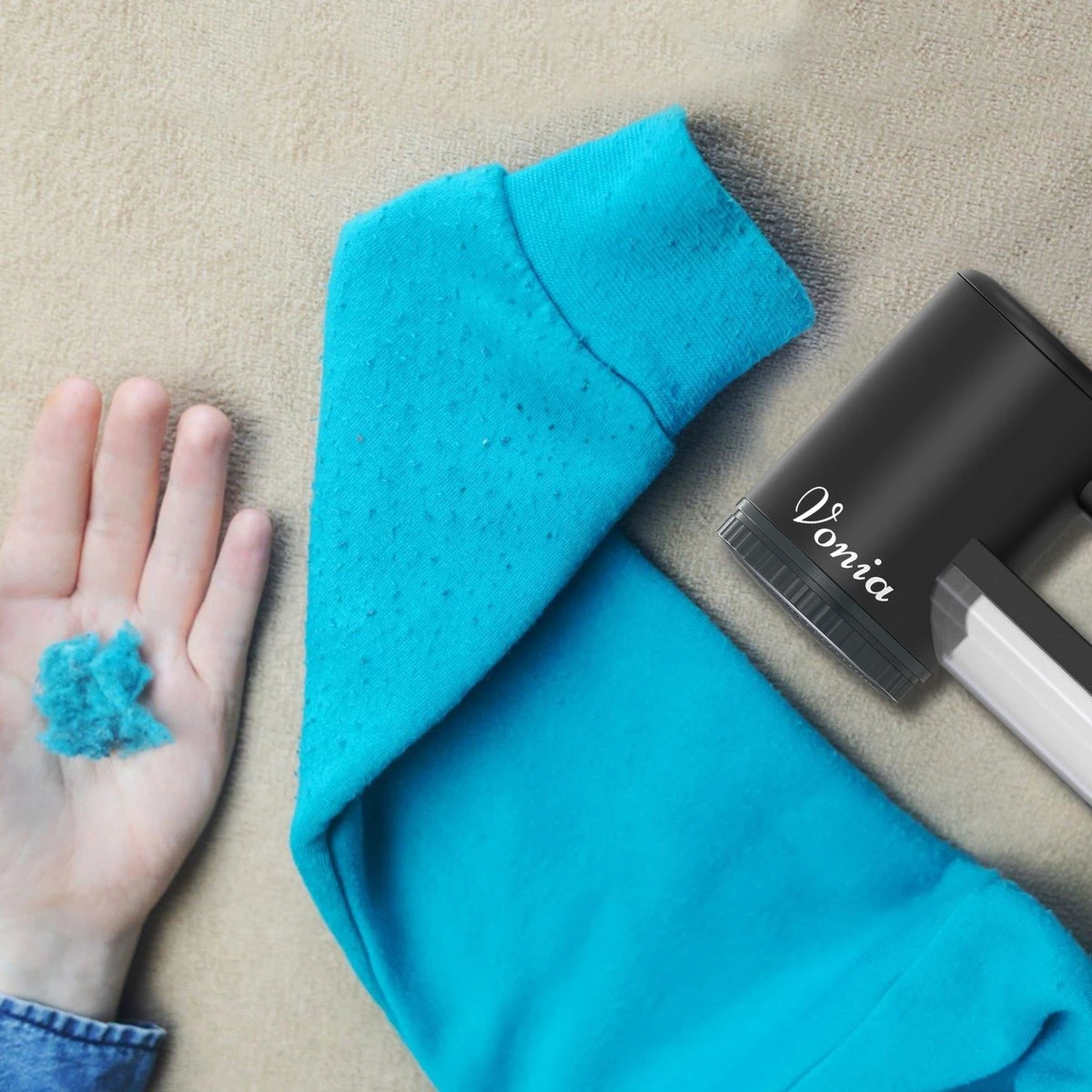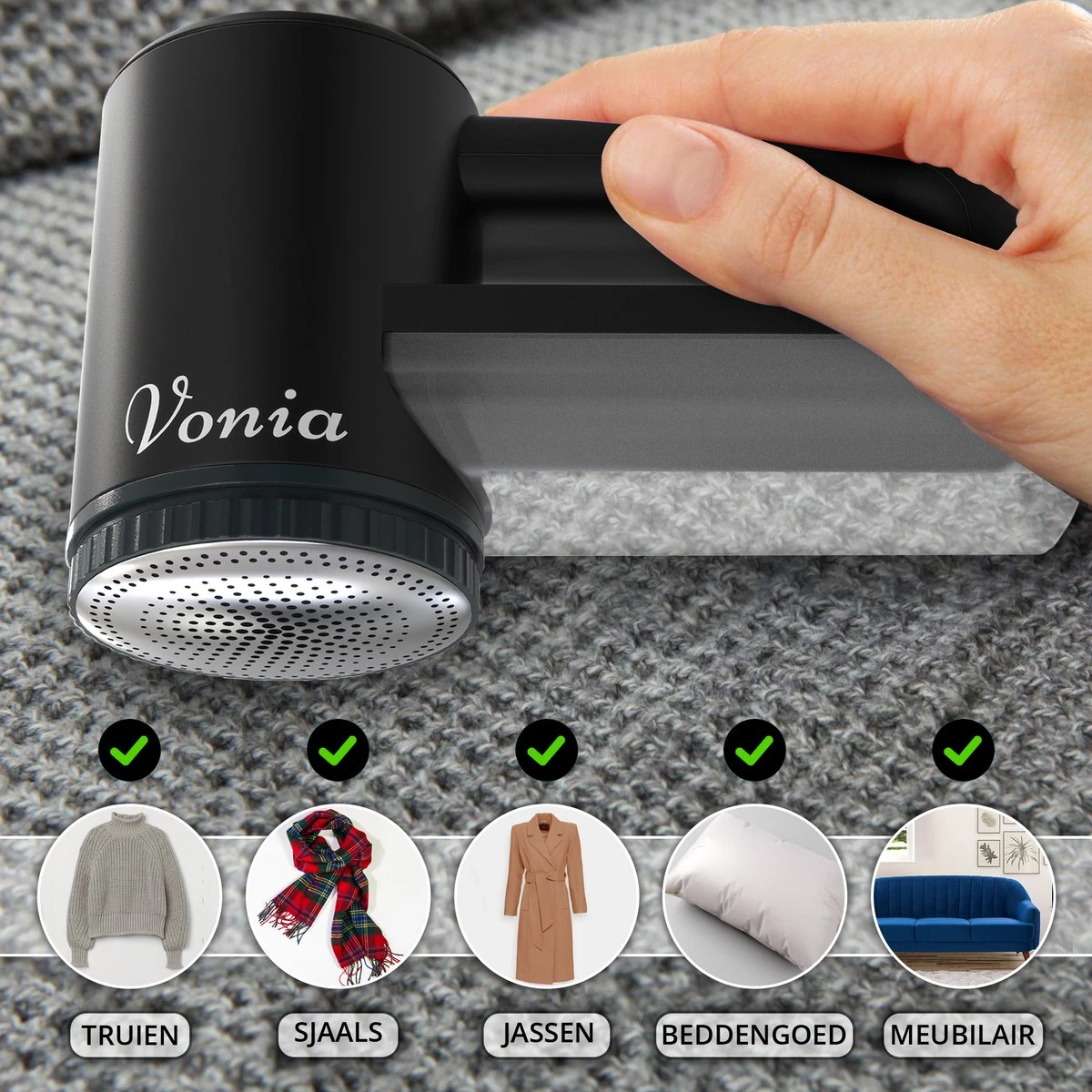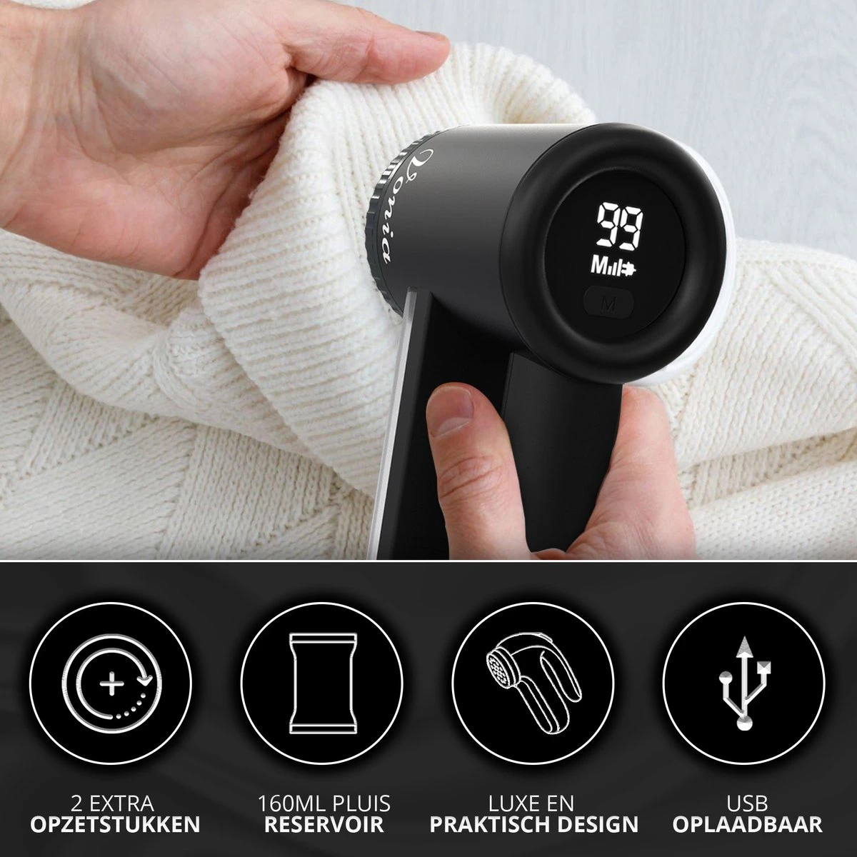 Vonia Pluizenverwijderaar – Pluizentondeuse – Elektrische Ontpluizer – Ontpiller – Draadloos – 2 Extra Opzetstukken- Zwart