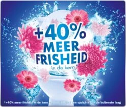 Een frisse bloesem geur zal worden verspreid, dankzij het luchtverfrissereffect, van de eerste tot de laatste spoelbeurt. Zo krijg je een heerlijk fris toilet!